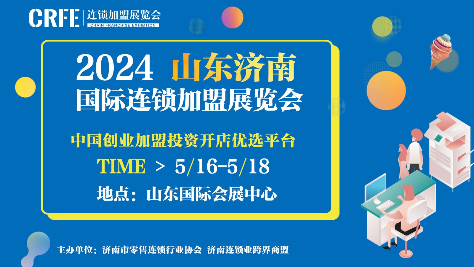 CRFE山东(济南)餐饮美食加盟博览会 时间:2024年5月16-18日 地点:山东国际会展中心! 主办单位:济南市零售连锁行业协会 展会负责人高经理:13720023952(同微)