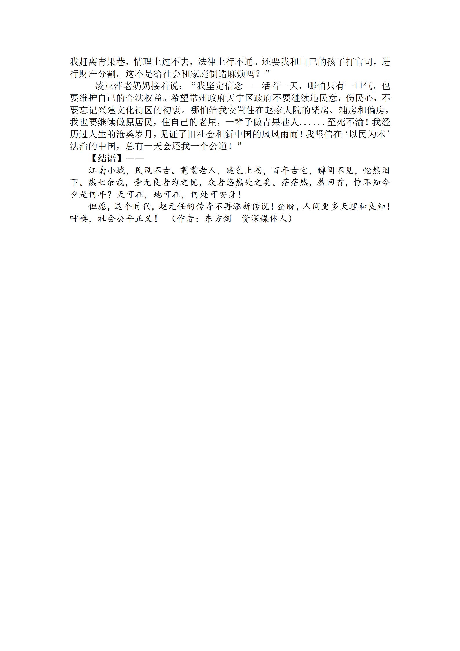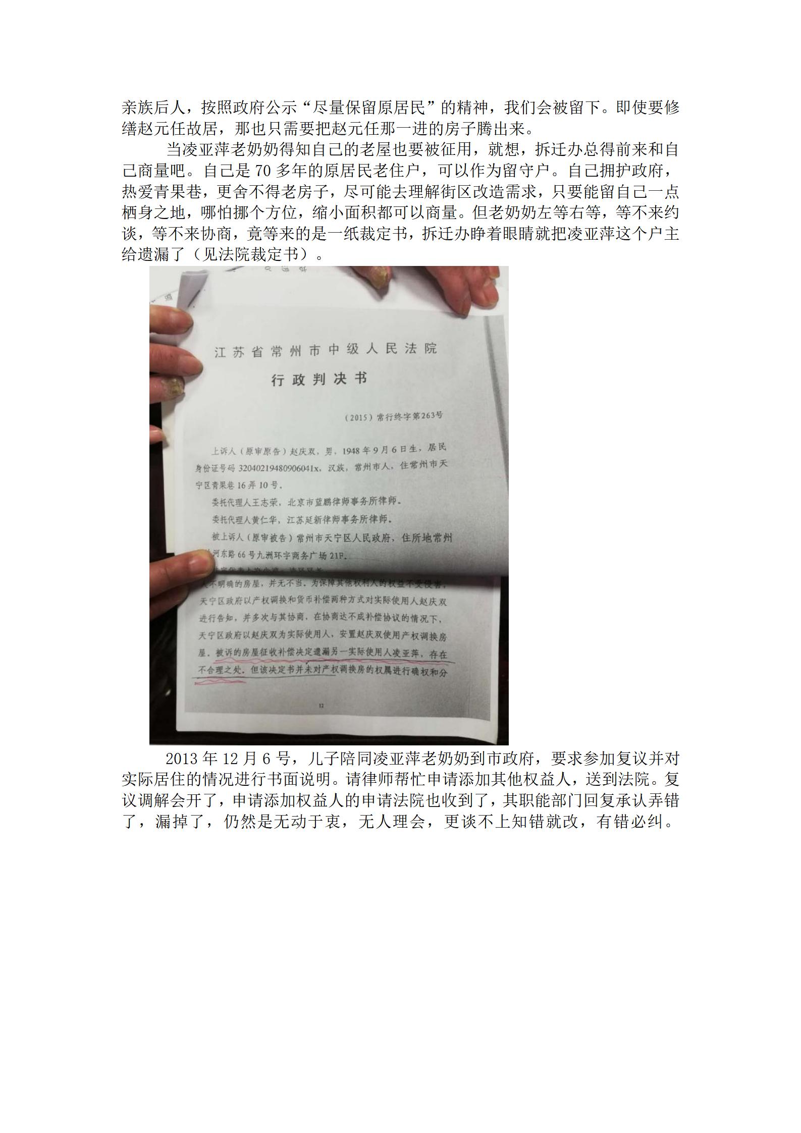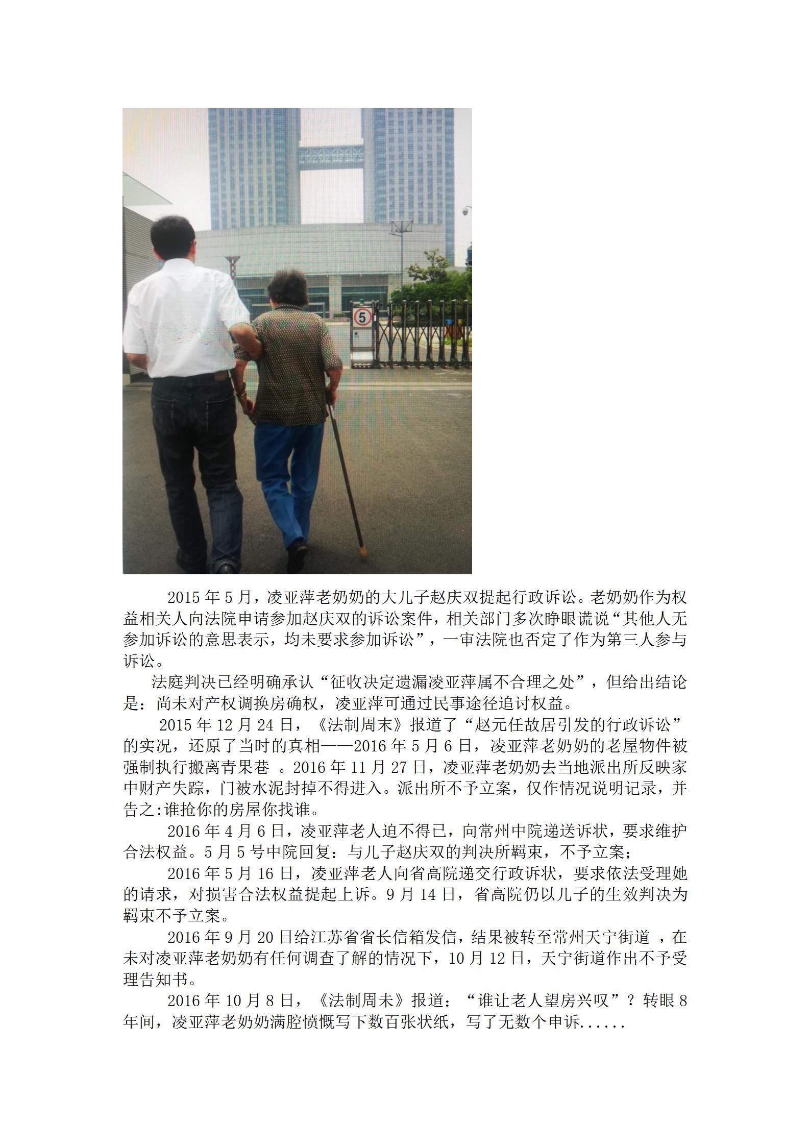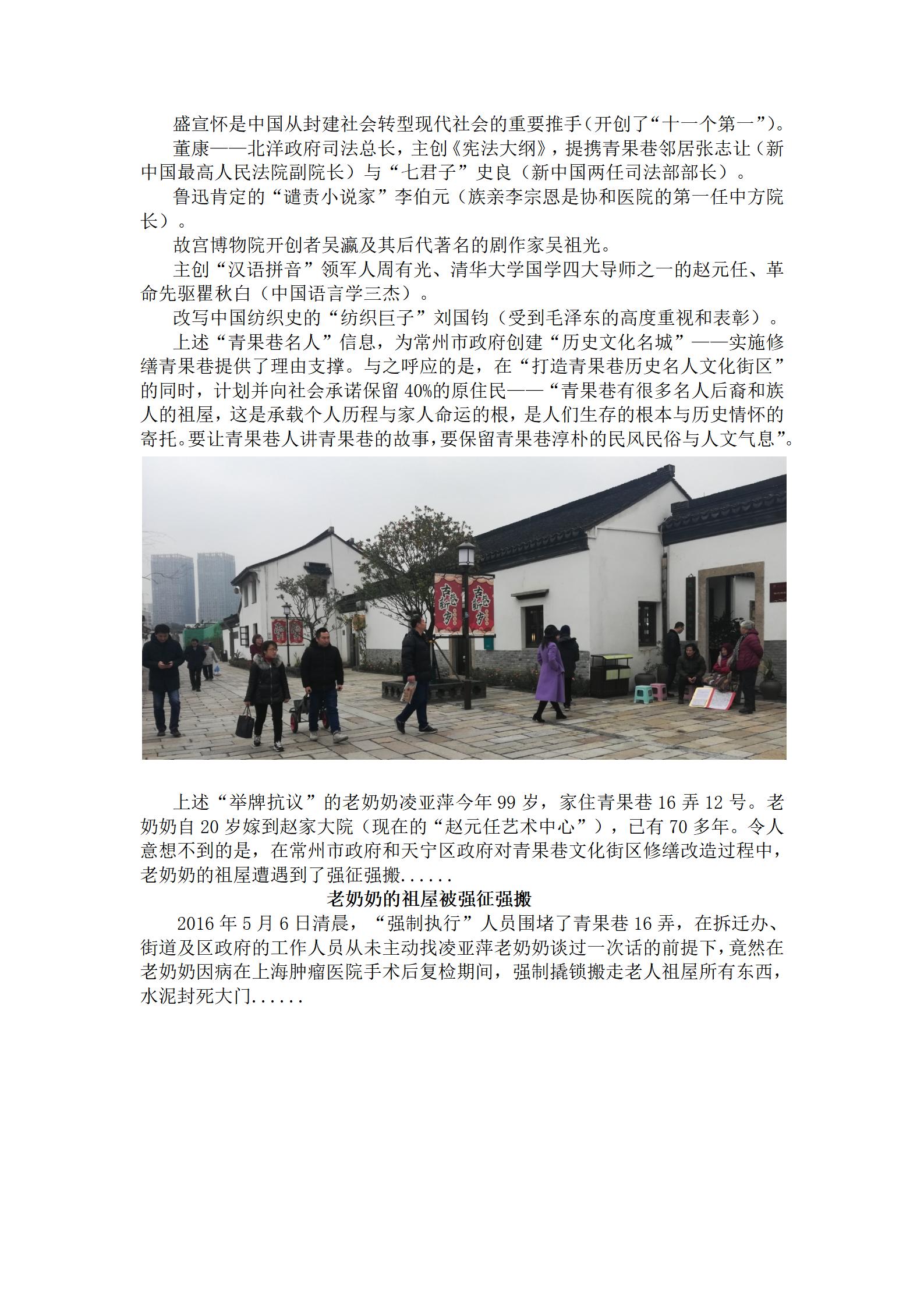 在常州市政府和天宁区政府对青果巷文化街区修缮征收过程中,家住青果巷16弄12号99岁耄耋老奶奶凌亚萍,因自己老屋与“赵元任故居”有关,99岁老奶奶忍辱负重,在投诉,在告状......